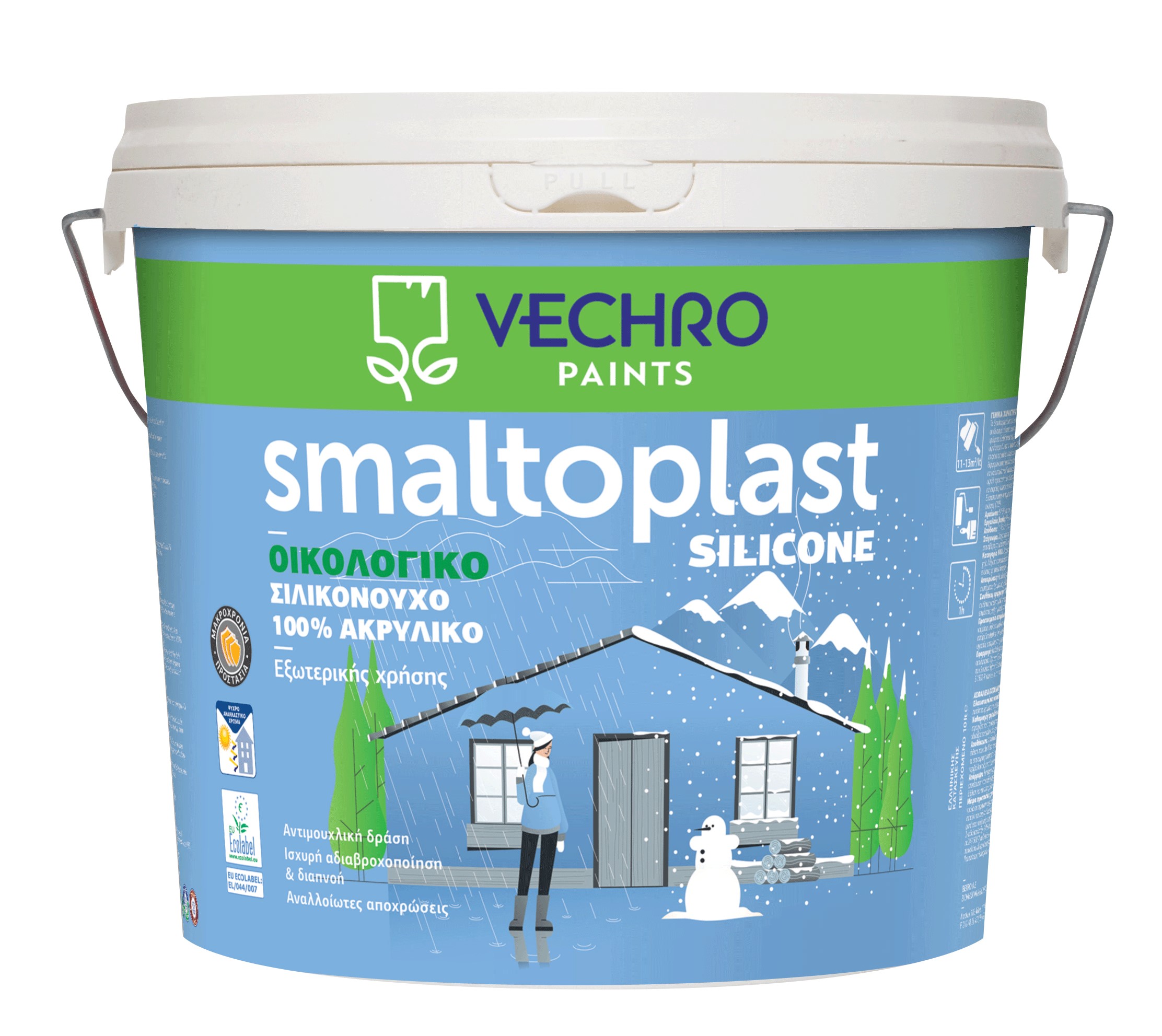 Οικολογικό εξαιρετικής ποιότητας ακρυλικό χρώμα, για τη βαφή και προστασία εξωτερικής τοιχοποιίας, με βάση συνδυασμό σιλικονούχων και 100% ακρυλικών ρητινών.